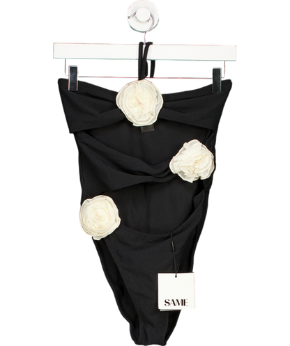 SAME Los Angeles Black Rose Cut Out One Piece Swimsuit Black/cream UK S