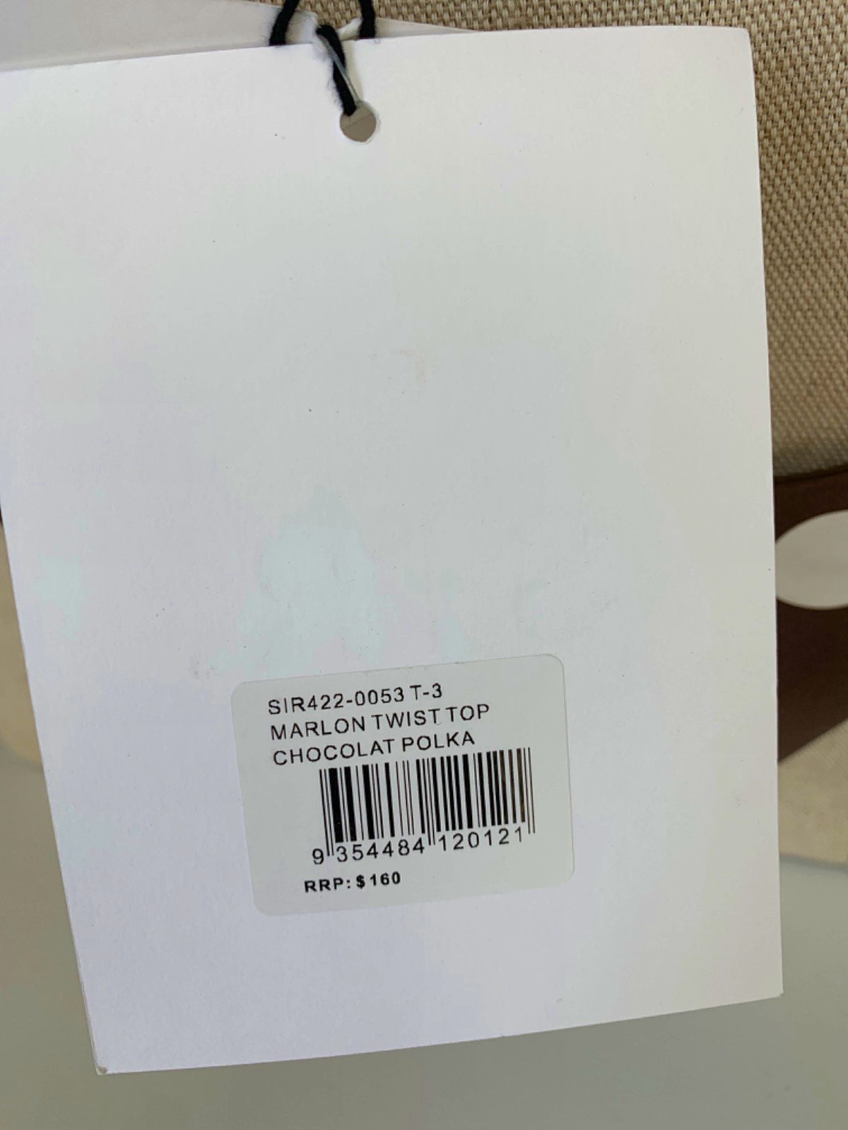 Make a statement on the beach in this chic SIR Chocolate Polka Marlon Twist Top Bikini. The rich chocolate colour is adorned with classic white polka dots, offering a vintage-inspired look. This high-quality bikini set includes a twist top with a flattering scoop neck and a secure back clasp, paired with matching bottoms designed for comfort and style. Perfect for lounging poolside or taking a dip in the ocean.