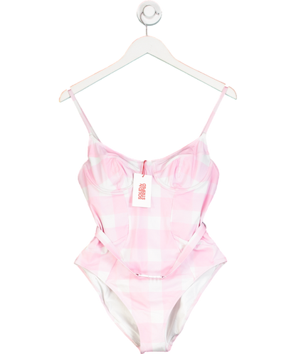 Solid & Striped Pink & White Check Spencer Belted Onepiece Swimsuit UK L