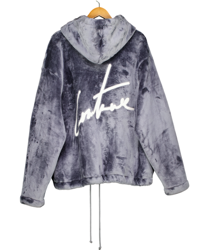 The Couture Club Blue Fur Applique logo Hooded Jacket UK M