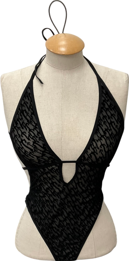 trapstar Black Women’s Jacquard Mesh Halterneck Bodysuit UK S