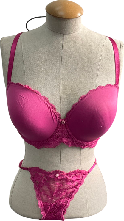victoria secret Pink Hope Lace Trim Lightly Lined Bra & Lace Thing UK M